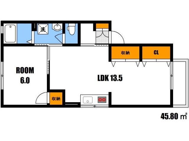 | 間取り | 1LDK | 専有面積 | 45.8m2 |