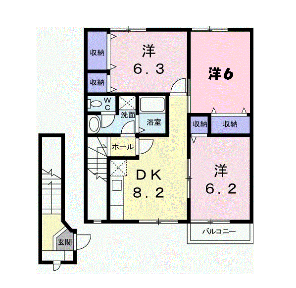 3DK(洋6.3 洋6.2 洋6 LDK8.2) |