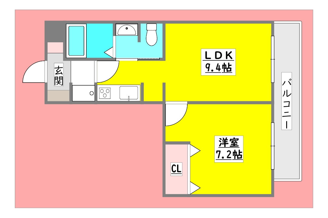 1LDK(洋7.2 LDK9.4) |