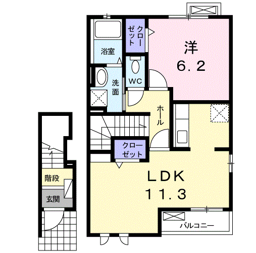 | 間取り | 1LDK(洋6.2 LDK11.3) | 築年月(築年数) | 2013年8月(築12年5ヶ月) |