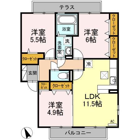 | 間取り | 3LDK(洋6.0 洋5.5 洋4.9 LDK11.5) | 築年月(築年数) | 2007年12月(築18年1ヶ月) |