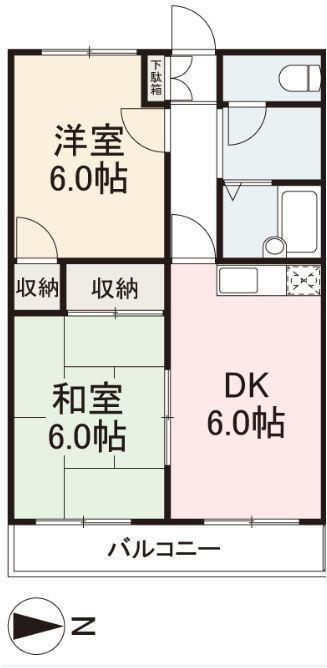 | 間取り | 2DK(和6 洋6 DK6) | 築年月(築年数) | 1995年1月(築30年12ヶ月) |