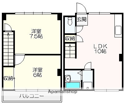 2LDK(洋7.5 洋6 LDK10) |