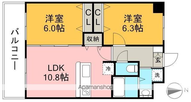 | 間取り | 2LDK(洋6.3 洋6 LDK10.8) | 築年月(築年数) | 2002年3月(築23年10ヶ月) |