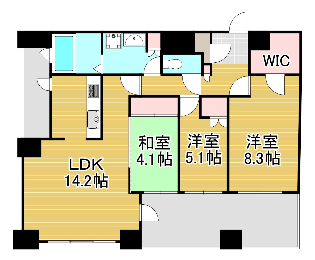 3LDK(和4.1 洋8.3 洋5.1 14.2) |