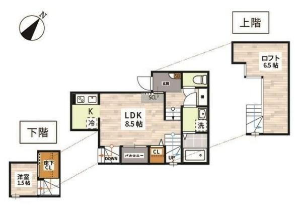 1LDK(洋1.5 LDK8.5 ロフト 6.5) |