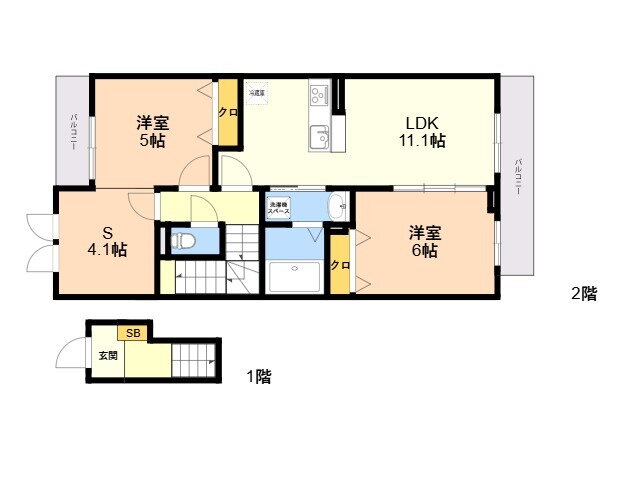 2LDK(洋6.0 洋5.0 LDK11.1 納戸 4.1) |