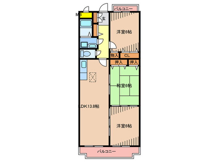 3LDK(和6 洋6 洋5 LDK13.8) |