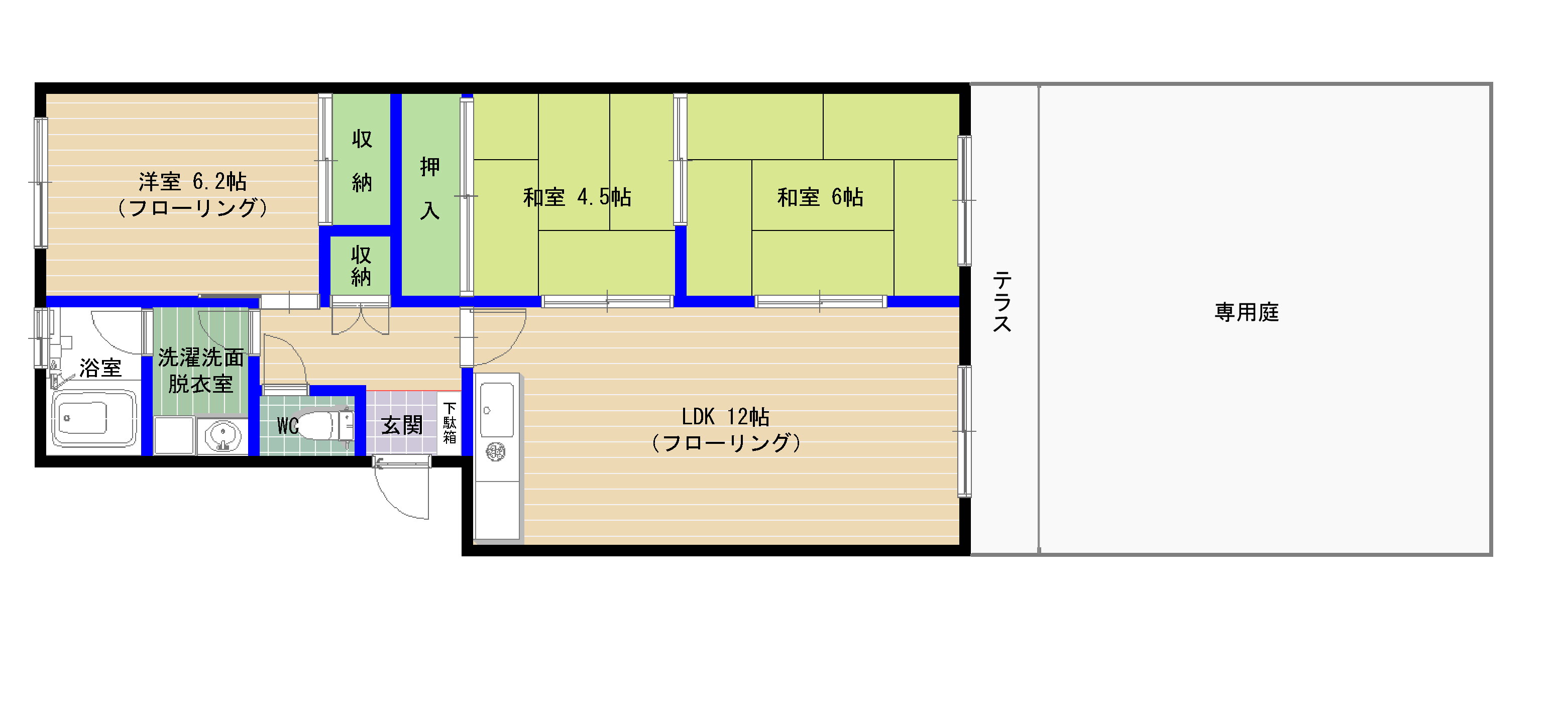 3LDK(和6 和4.5 洋6.2 12) |