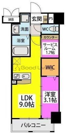 1SLDK(洋3.1 LDK9.0 納戸 1.7) |