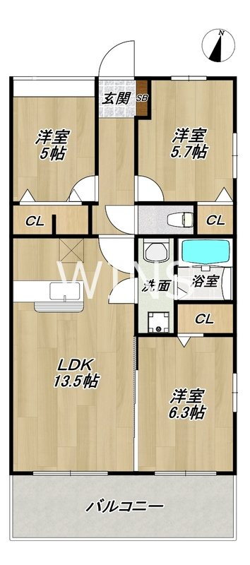 3LDK(洋6.3 洋5.7 洋5 LDK13.5) |