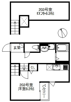ワンルーム(洋8.2 ロフト 6.3) |