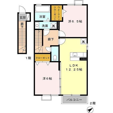 2LDK(洋6.5 洋6 LDK12.2) |