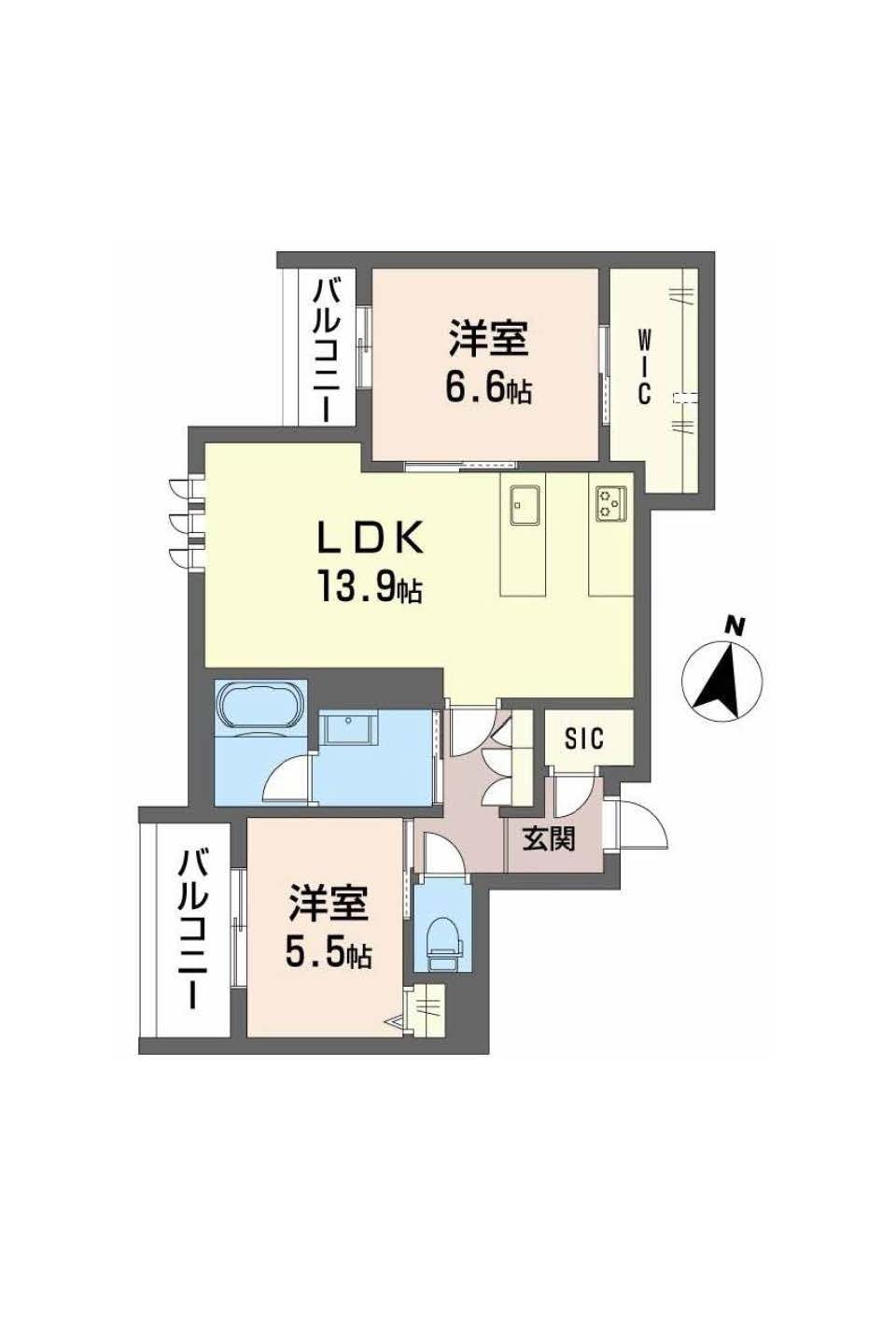 2LDK(洋6.6 洋5.5 LDK13.9) |