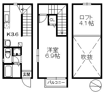 1K(洋6.9 K3.6 ロフト 4.1) |