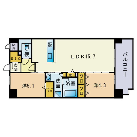 2LDK(洋5.1 洋4.3 LDK15.7) |
