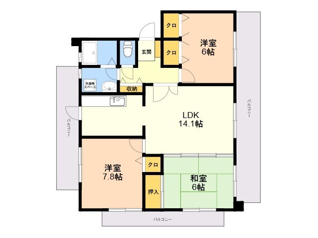 3LDK(和6 洋7.8 洋6 LDK14.1) |