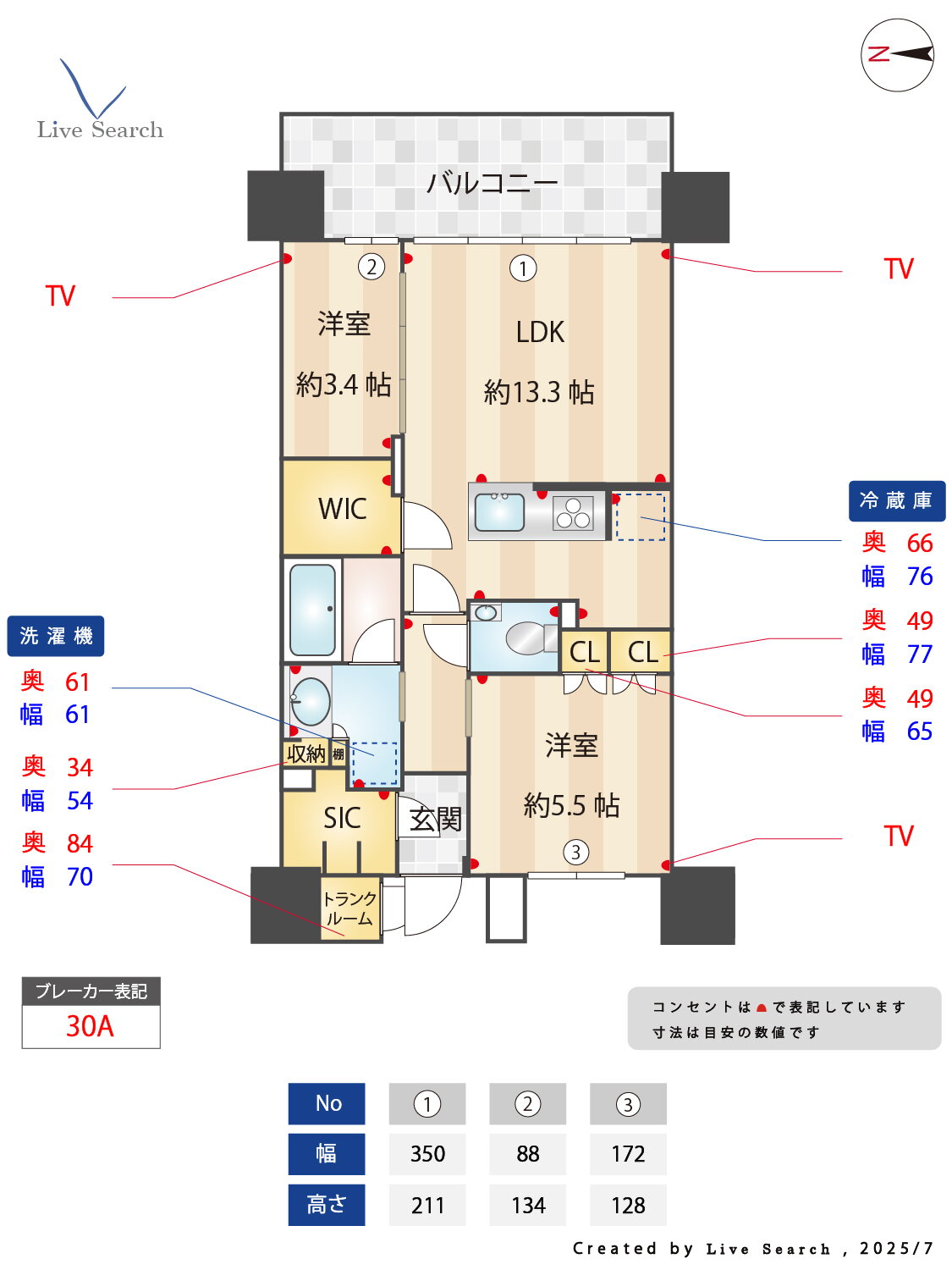 2LDK(洋5.5 洋3.4 LDK13.3) |