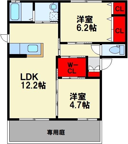 2LDK(洋6.2 洋4.7 LDK12.2) |