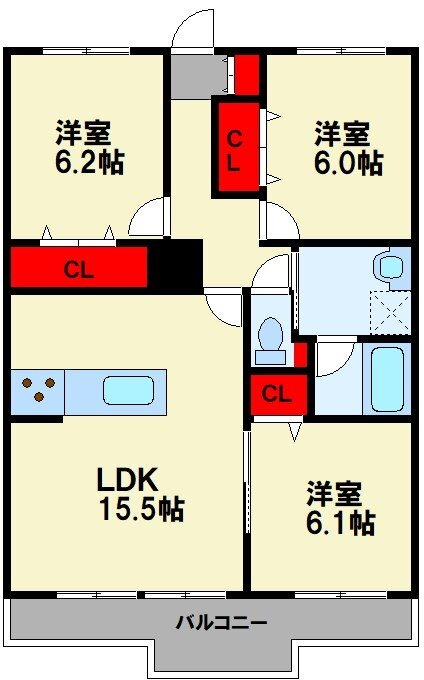 3LDK(洋6.2 洋6.1 洋6 LDK15.5) |