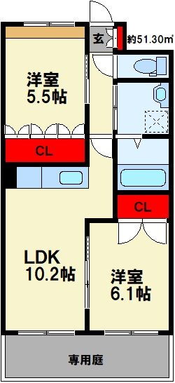 2LDK(洋6.1 洋5.5 LDK10.2) |