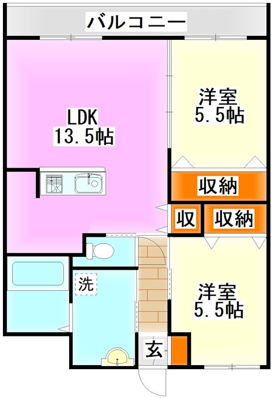 2LDK(洋5.5 洋5.5 LDK13.5) |