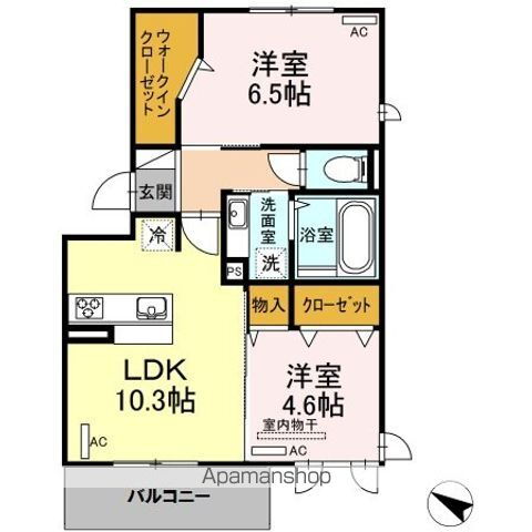 | 間取り | 2LDK(洋6.5 洋4.6 LDK10.3) | 築年月(築年数) | 2020年3月(築5年9ヶ月) |