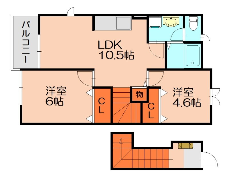 | 間取り | 2LDK(洋6 洋4.6 LDK10.5) | 築年月(築年数) | 2002年11月(築23年1ヶ月) |