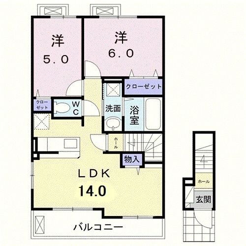 | 間取り | 2LDK(洋6.0 洋5.0 LDK14.0) | 築年月(築年数) | 2022年8月(築3年4ヶ月) |