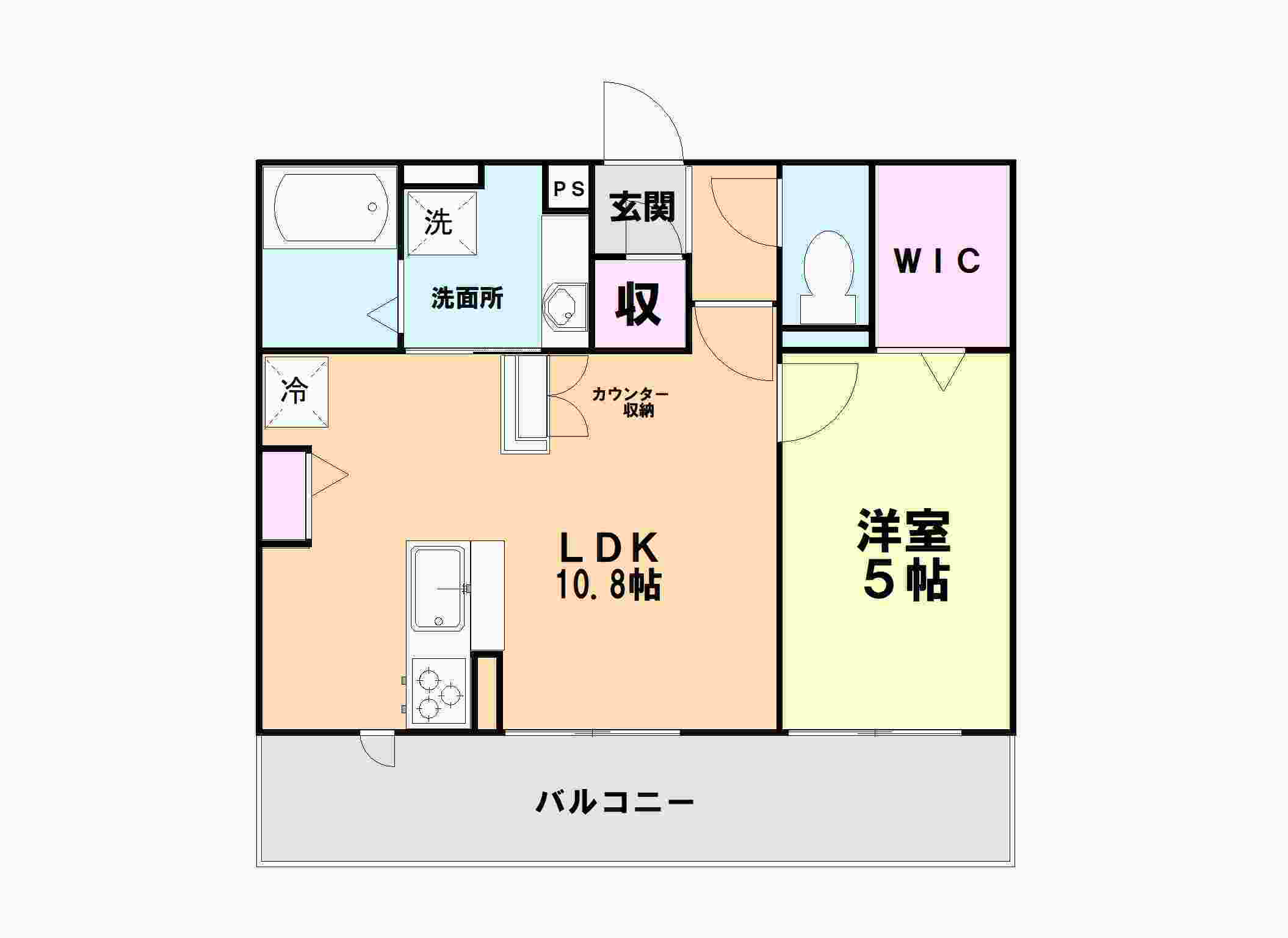 | 間取り | 1LDK(洋5 LDK10.8) | 築年月(築年数) | 2018年3月(築7年9ヶ月) |