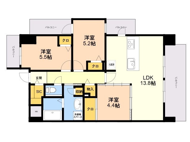| 間取り | 3LDK(洋5.5 洋5.2 洋4.4 LDK13.8) | 築年月(築年数) | 2026年2月 新築 |