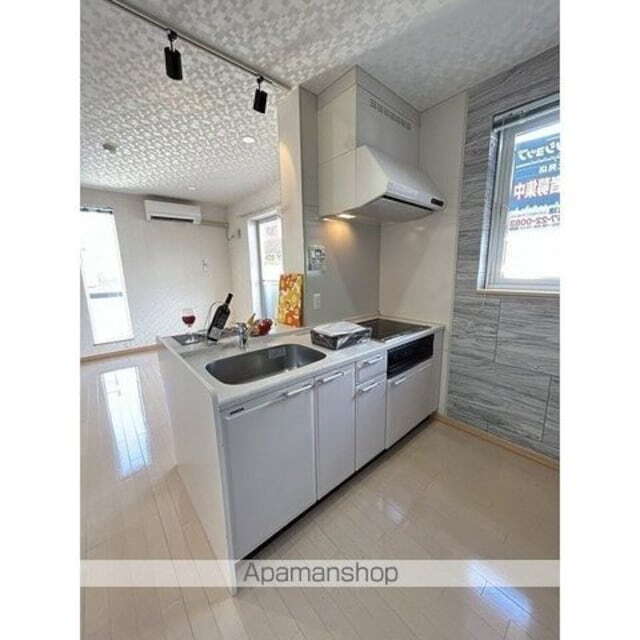 - とん田通が目の前でアクセスが良いです!二台目小型車限定 寒冷地エアコン導入!Wi-Fi使用料無料!対面キッチン、デザイナーズ仕様、パウダーカウンター完備の1LDK