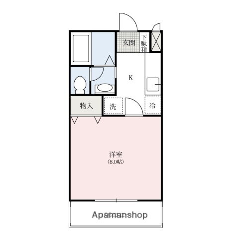 | 間取り | 1K(洋8) | 築年月(築年数) | 2005年9月(築20年2ヶ月) |