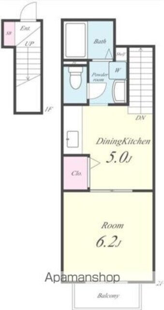 | 間取り | 1DK(DK5 洋6.2) | 築年月(築年数) | 2004年1月(築21年12ヶ月) |