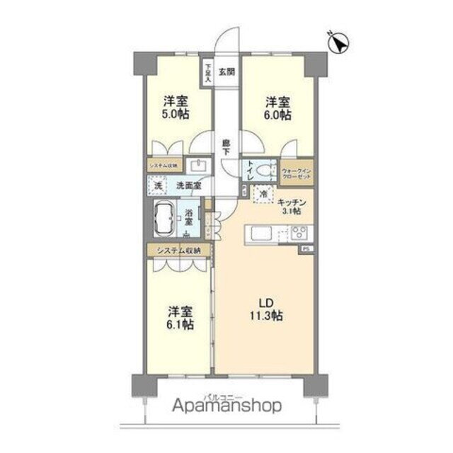 3LDK(LDK14.4 洋6.1 洋6 洋5) |