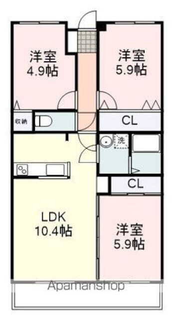 | 間取り | 3LDK(LDK10.9 洋5.9 洋5.9 洋4.9) | 築年月(築年数) | 2005年4月(築20年9ヶ月) |