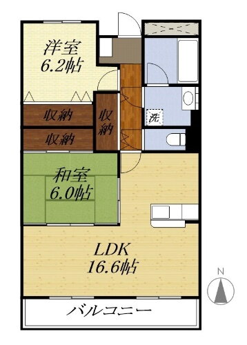 | 間取り | 2LDK(LDK16.6 和6 洋6.2) | 築年月(築年数) | 2005年3月(築20年10ヶ月) |