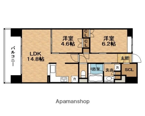2LDK(LDK14.8 洋6.2 洋4.6) |
