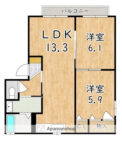 | 間取り | 2LDK(DK6.6 和6.1 洋5.9 洋6.7) | 築年月(築年数) | 2002年8月(築23年5ヶ月) |