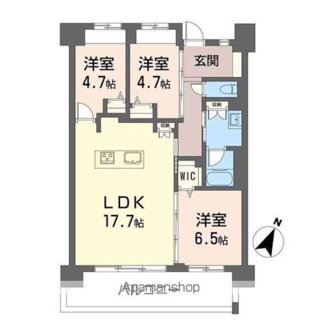 3LDK(LDK17.7 洋4.7 洋4.7 洋6.5) |