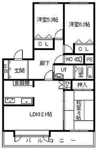 3LDK(LDK 12.1 洋 6.2・5.3 和 6.0) |