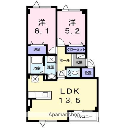 | 設備 | プロパンガス・バス・トイレ別・シャワー・シャンプードレッサ・室内洗濯機置き場・BS端子・バルコニー・駐輪場・クローゼット | ||||