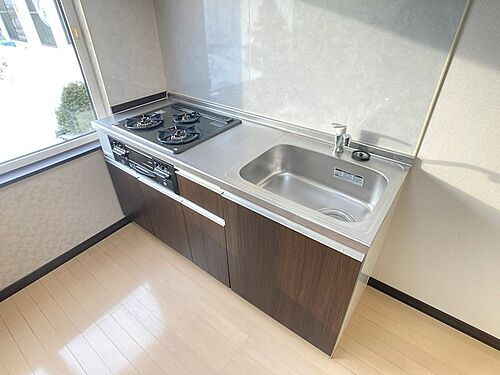 | 設備 | 上水道・プロパンガス・本下水・バス・トイレ別・ガスコンロ可・コンロ2口以上・システムキッチン・給湯・シャンプードレッサ・エアコン・室内洗濯機置き場・BS端子・フローリング・モニタ付インターホン・温水洗浄便座・クローゼット・シューズボックス・照明器具・暖房 |