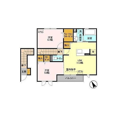 2LDK(洋 5.6・6.1 LDK 11.6) |
