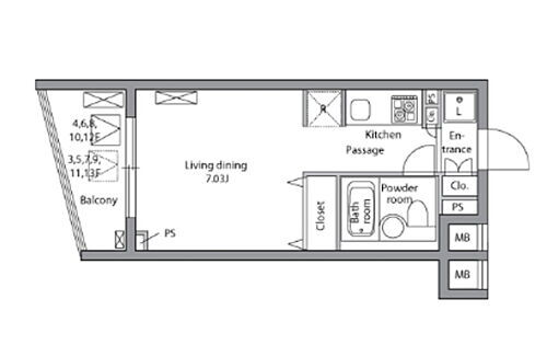 | 間取り | ワンルーム | 専有面積 | 22.78m2 |