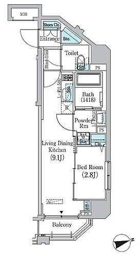 | 専有面積 | 33.05㎡ | 所在階/階数 | 8階/12階建 |