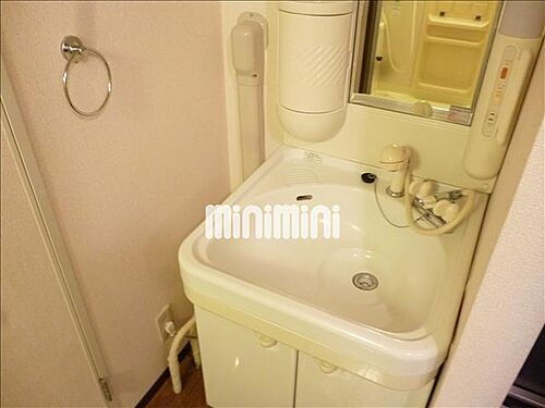 - 単身者の方が欲しい設備上位の独立洗面化粧台完備。