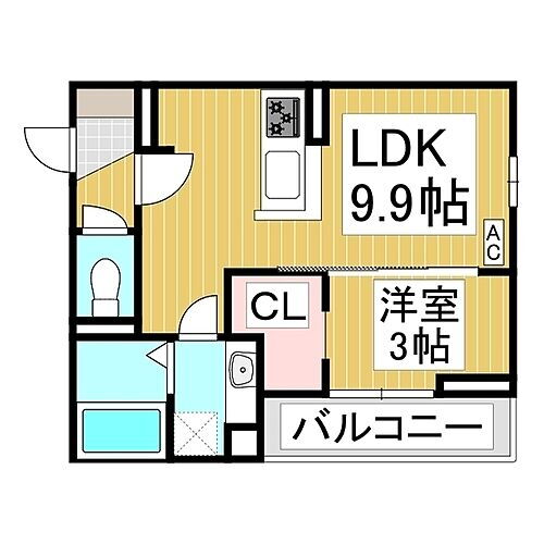 | 間取り | 1LDK(LDK 9.9 洋 3) | 築年月(築年数) | 2025年9月 新築 |