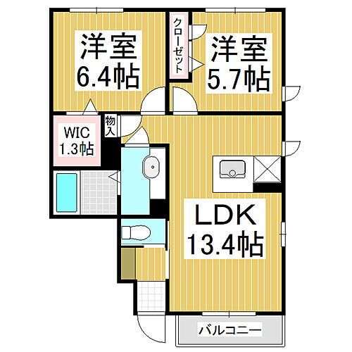2LDK(LDK 13.4 洋 5.7・6.4) |