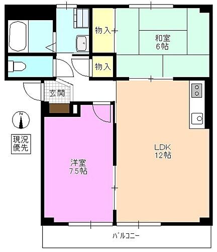 | 間取り | 2LDK(和 6 洋 7.5 LDK 12) | 築年月(築年数) | 2000年4月(築25年8ヶ月) |
